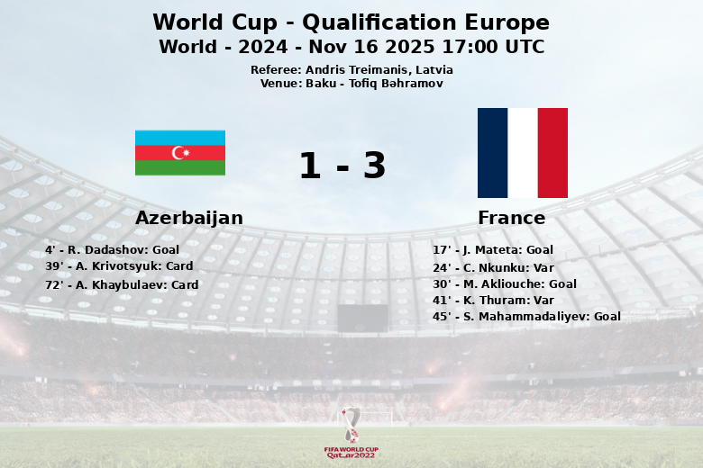 Home Matches Azerbaijan vs France Nov 16 2025 17:00 UTC