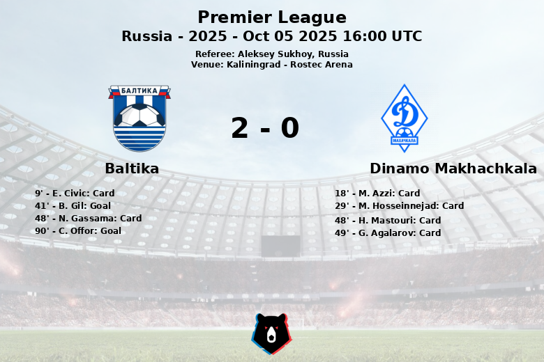 Kaliningrad witnessed a hard-fought match between Baltika and Dinamo Makhachkala at the Rostec Arena, which ended with a victory for the home team. The match, valid for matchday 11 of the Russian Premier League, was characterized by its intensity and several yellow cards.