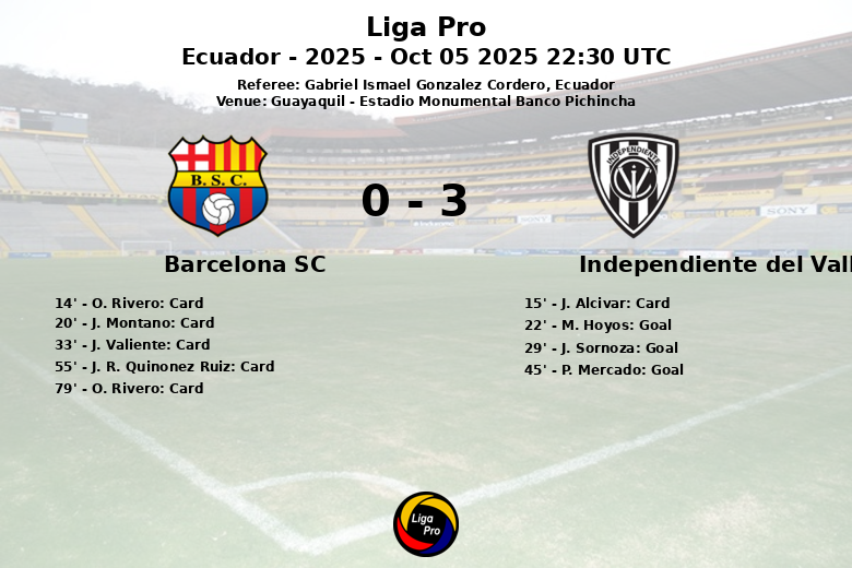 The match, refereed by Gabriel Ismael Gonzalez Cordero, leaves Independiente del Valle in a favorable position in the Championship Group, while Barcelona SC will need to rethink their strategy for upcoming matches.