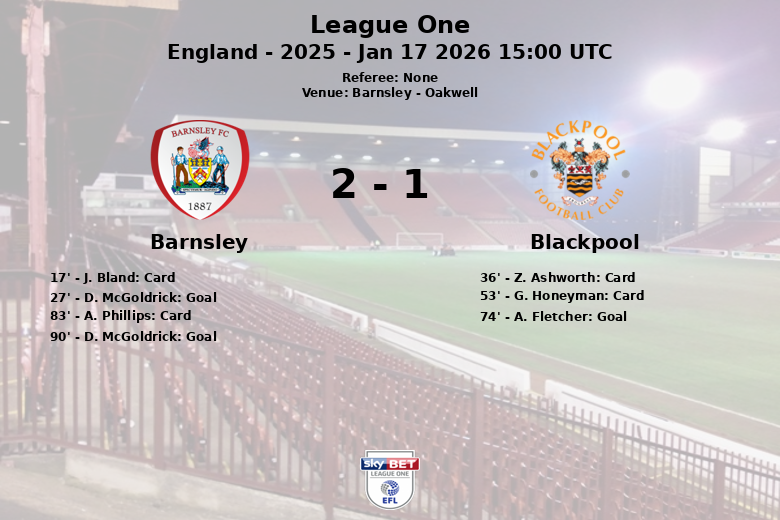 Barnsley vs Blackpool Jan 17 2026 15:00 UTC