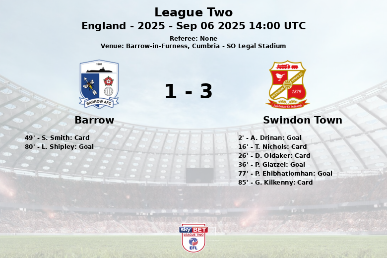Barrow-in-Furness, Cumbria – Swindon Town claimed a valuable victory on their visit to SO Legal Stadium against Barrow, in a match corresponding to the seventh matchday of League Two. The match, played on September 6, 2025, was marked by high intensity and moments of great excitement.