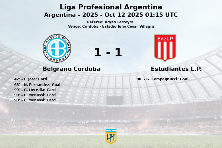 Córdoba, Argentina – In a match held at the Estadio Julio César Villagra, Belgrano de Córdoba and Estudiantes de La Plata drew with a score of 1 to 1 in a match corresponding to matchday 12 of the 2025 Argentine Professional League.