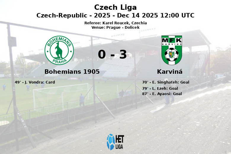 Prague, Czech Republic – In a match played at the Dolicek in Prague, Karviná secured an important away victory against Bohemians 1905, with a final score of 1 to 3. The match, corresponding to matchday 19 of the Czech Liga, was marked by Karviná’s effectiveness in the second half.
