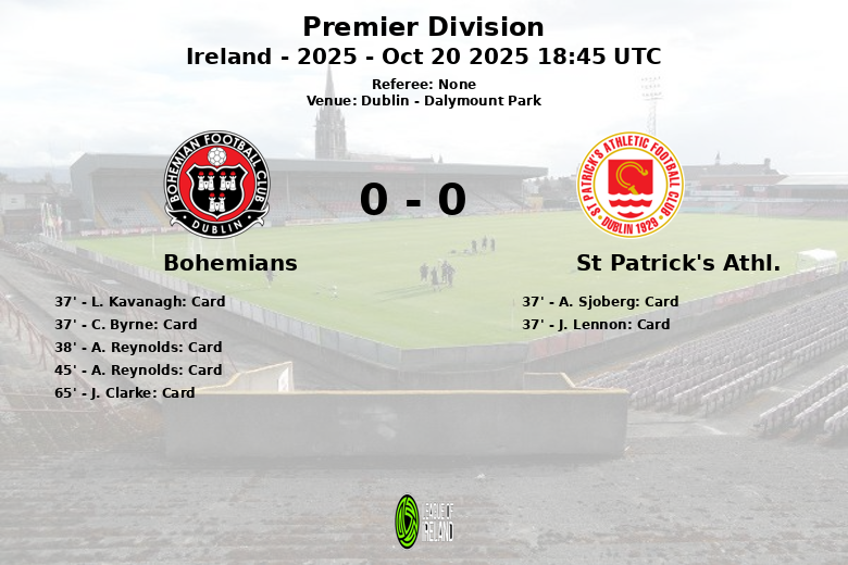 Dublin, Ireland – In a hard-fought match at Dalymount Park, Bohemians and St. Patrick’s Athletic played to a 0-0 draw in a game marked by intensity and discipline. The match, corresponding to matchday 33 of the Irish Premier Division, 2025 season, saw Bohemians dominate possession with 59%, while St. Patrick’s Athletic proved dangerous on the counter-attack.