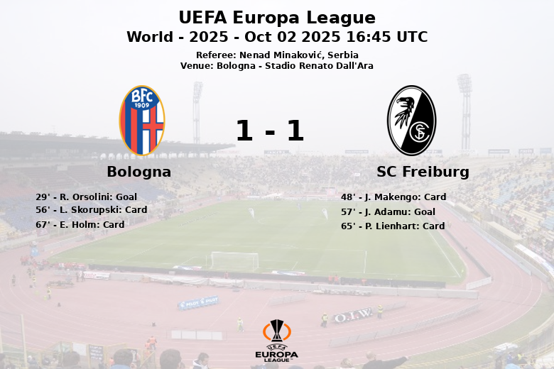 Bologna took the lead in the 29th minute thanks to a goal by Riccardo Orsolini, who took advantage of an excellent assist from Nicolò Cambiaghi to beat the opposing goalkeeper. However, the joy of the locals did not last long. Already in the second half, a penalty in favor of SC Freiburg allowed Junior Adamu to equalize the score in the 57th minute.