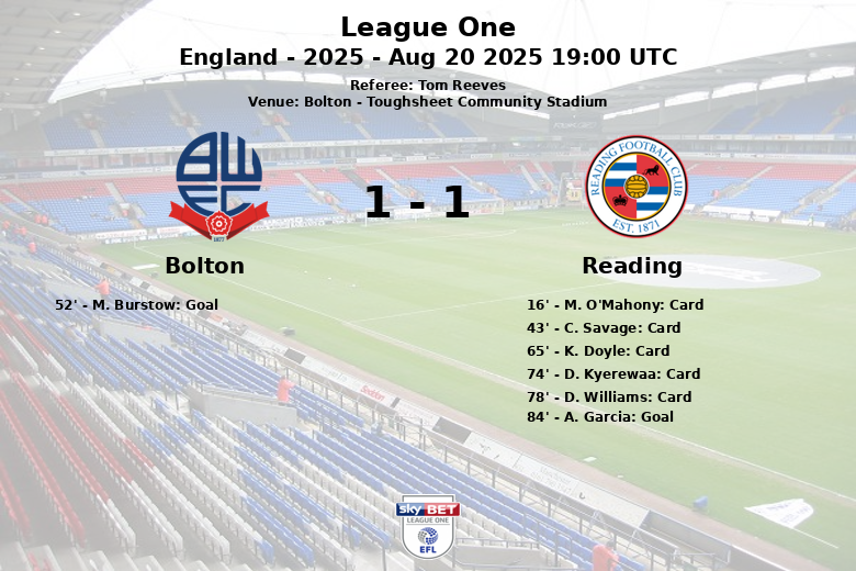 The referee, Tom Reeves, had a busy game, calling a total of 29 fouls (20 for Reading and 9 for Bolton) and showing 5 yellow cards to the Reading team. Despite the intensity of the game, no red cards were issued. Bolton had 3 corner kicks, while Reading had only one. The match, corresponding to the fourth round of League One, made it clear that both teams have a lot to improve on in the coming weeks.