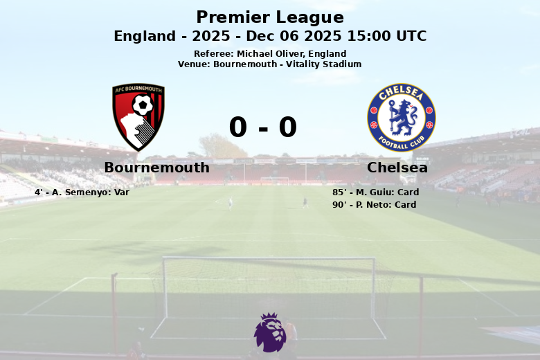 Bournemouth, England – Bournemouth and Chelsea played to a 0-0 draw at the Vitality Stadium in a match where defenses reigned supreme. The Premier League 2025 match, part of week 15, saw Chelsea dominate possession (60%) but struggle to convert it into clear chances. Bournemouth, playing at home, displayed defensive solidity and despite having less possession (40%), attempted to create danger, with Semenyo having a goal disallowed early on for offside. The home side had 13 shots, with 5 on target, while Chelsea only managed 4 shots on target from their 11 attempts. A lack of precision and strong defensive lines from both sides resulted in a goalless final score. Referee Michael Oliver handed out two yellow cards to Chelsea players. Bournemouth committed 15 fouls compared to Chelsea’s 13.