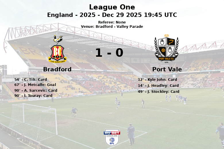 Home Matches Bradford vs Port Vale Dec 29 2025 19:45 UTC