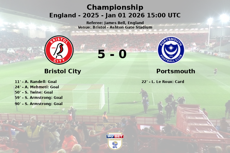 Portsmouth, on the other hand, struggled to find their place in the match. With only 38% possession and just 5 shots, two of them on target, the away team failed to trouble the opposition’s goal. L. Le Roux received a yellow card in the 22nd minute. Bristol City committed 6 fouls, while Portsmouth accumulated 14. The match, corresponding to matchday 25 of the 2025 Championship, made clear Bristol City’s dominance on their own ground.