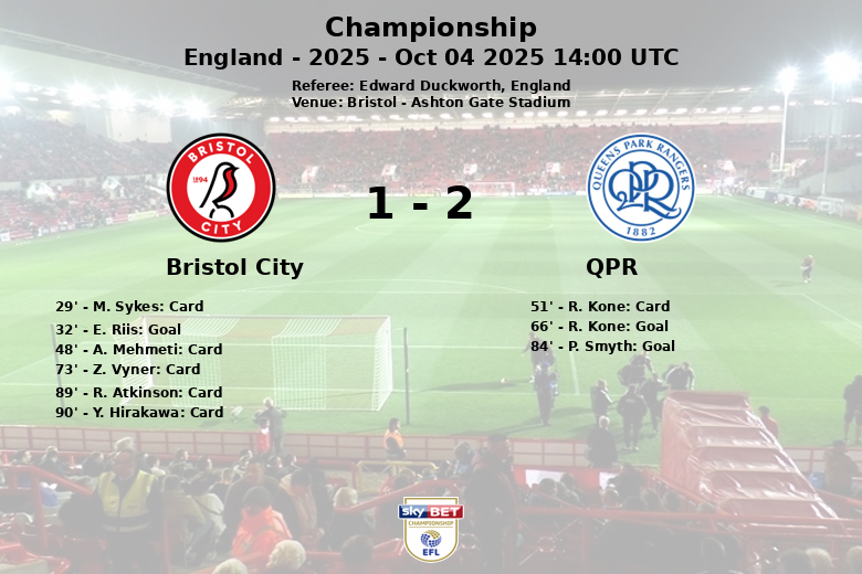 Bristol City, despite their greater possession and generating more shots (11 in total, although only one on target), failed to capitalize on their dominance. QPR, with less possession (43%) and fewer shots (8), was more accurate in key moments, demonstrating efficiency in attack. Referee Edward Duckworth showed five yellow cards to Bristol City and one to QPR in a match with 8 fouls per side.