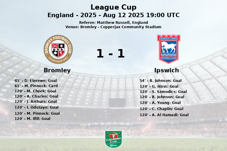 Copperjax Community Stadium witnessed a thrilling League Cup first-round match between Bromley and Ipswich. The game, held in Bromley, ended in a draw after a lengthy penalty shootout.