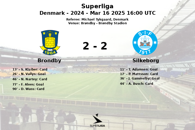 Silkeborg and Brøndby played an exciting match at Brøndby Stadion, with Brøndby emerging victorious with a 2-3 scoreline. The game, part of the 22nd round of the Danish Superliga, was a back-and-forth affair. Silkeborg took the lead in the 11th minute with a goal from T. Adamsen. Brøndby quickly responded, equalizing the game in the 26th minute thanks to a goal from N. Vallys. Silkeborg regained the lead in the 36th minute with a goal from J. Gammelby. However, Brøndby managed a comeback in the second half, with a goal from F. Alves in the 77th minute sealing their victory. The match was tense, as evidenced by the numerous yellow cards shown to both teams (four for Brøndby and three for Silkeborg). While Silkeborg slightly dominated possession (52%), Brøndby created more scoring chances, with 18 shots (5 on target) compared to Silkeborg’s 7 (3 on target).