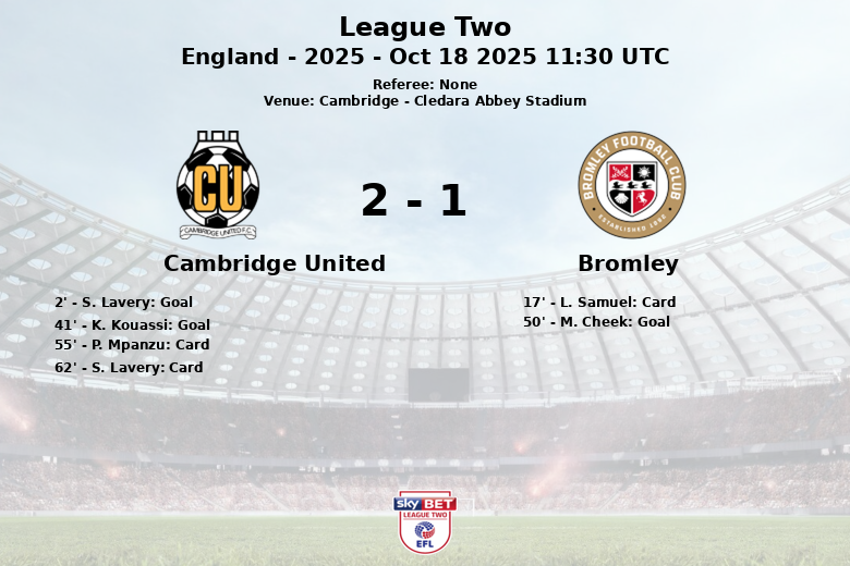 Cambridge, England – Cambridge United secured a narrow victory over Bromley at the Cledara Abbey Stadium in a League Two match on October 18, 2025. Cambridge United controlled the possession with 56% versus Bromley’s 44%.