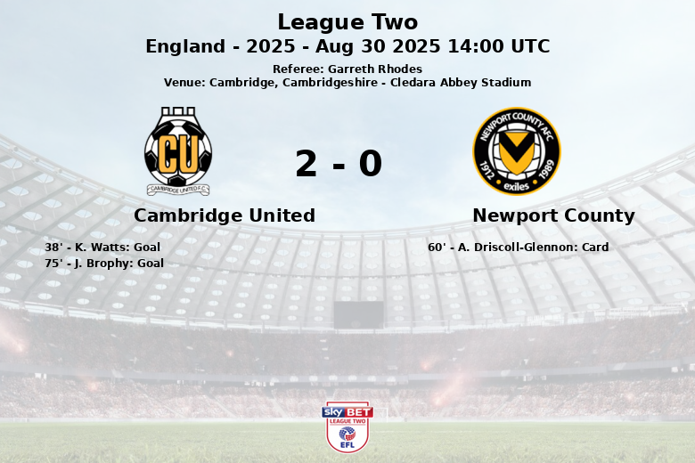 K. Watts opened the scoring in the 38th minute, thanks to an excellent assist from S. Kaikai, putting Cambridge United ahead. Despite Newport County’s attempts to equalize, Cambridge United maintained defensive solidity.