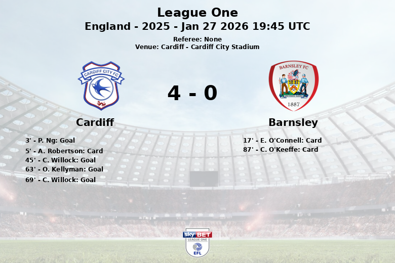Cardiff, England – In a match that showcased their superiority, Cardiff City convincingly defeated Barnsley at the Cardiff City Stadium with a final score of 4 to 0. From the kickoff, Cardiff imposed their game, opening the score at the 3rd minute with a goal by P. Ng, assisted by O. Tanner. The home team maintained control of the ball for most of the match, reaching 64% possession, and creating constant scoring opportunities.