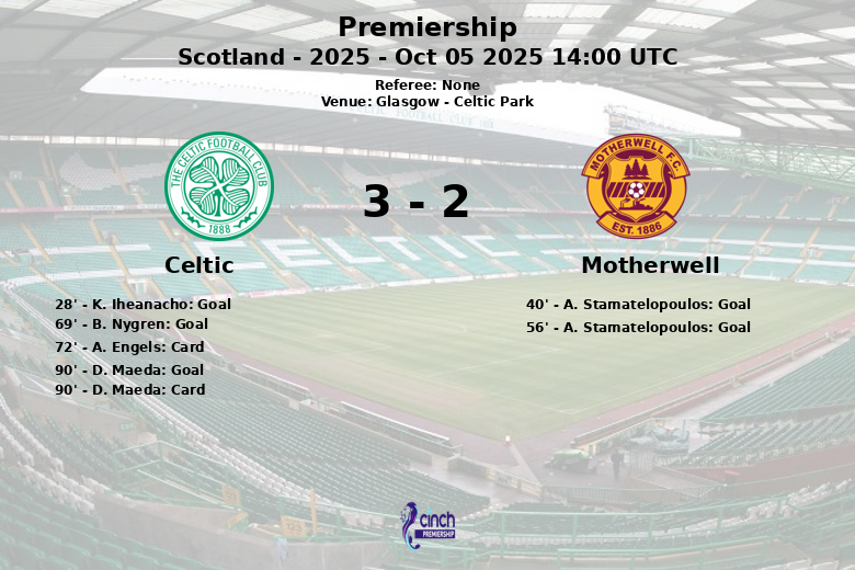 The match began with a penalty in favor of Celtic, converted into a goal by K. Iheanacho in the 28th minute. However, the home joy would be short-lived, as A. Stamatelopoulos equalized for Motherwell in the 40th minute, thanks to a good assist from T. Maswanhise.