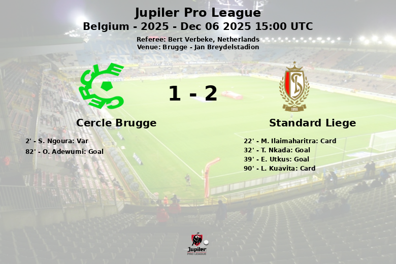 The match played at the Jan Breydelstadion in Brugge between Cercle Brugge and Standard Liege ended in a draw that kept fans on the edge of their seats. Despite Cercle Brugge’s dominance in possession, with 65%, it was Standard Liege who struck first, with a goal by T. Nkada in the 32nd minute, assisted by C. Nielsen. The visitors’ joy was extended when an own goal by E. Utkus, in the 39th minute, widened the lead for Standard Liege. However, Cercle Brugge didn’t give up and fought to get back into the game. Their effort was rewarded in the 82nd minute with a goal by O. Adewumi, assisted by A. Minda, reducing the difference on the scoreboard. The match, valid for matchday 17 of the Jupiler Pro League, was marked by intensity and midfield battles, reflected in the 16 fouls committed by Standard Liege and the two yellow cards received by M. Ilaimaharitra and L. Kuavita. Despite generating more shots on target (6 against 2), Cercle Brugge couldn’t translate their possession advantage into a victory, settling for a draw at home. A disallowed goal for Cercle Brugge early in the game added drama to the encounter.