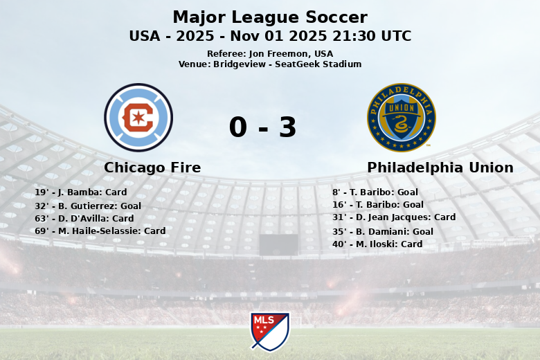 Despite holding 71% of the possession, Chicago Fire struggled to find their rhythm. B. Gutierrez managed to pull one back in the 32nd minute, although he had previously missed a penalty. The match was also marked by intensity and fouls, with three yellow cards for Chicago Fire and two for Philadelphia Union. The Union, with 29% possession, capitalized on their scoring opportunities, demonstrating efficiency in front of the opponent’s goal. Chicago Fire, despite generating more shots and corners, failed to convert their territorial dominance into goals.