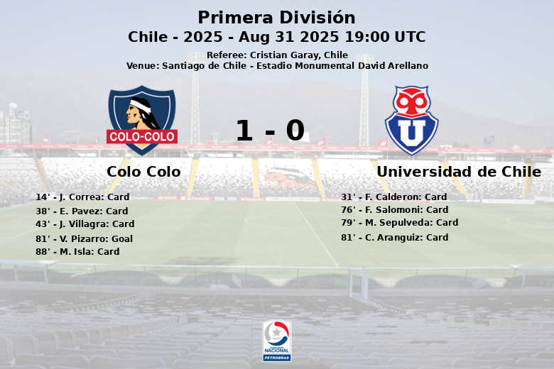 The match was riddled with cards. Colo Colo received four yellow cards, while Universidad de Chile accumulated three yellow cards and one red card that conditioned their game from the first half. The tension was felt every minute, reflected in the constant interruptions and the high number of fouls committed by both teams. The winning goal for Colo Colo came in the 81st minute, thanks to a goal by V. Pizarro, unleashing joy in the stands. Despite Universidad de Chile’s efforts to equalize, Colo Colo managed to maintain the lead until the end, consolidating their dominance in the clásico.