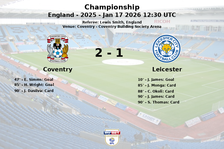 Coventry, England – In a vibrant and hard-fought match at the Coventry Building Society Arena, Coventry triumphed over Leicester in a game corresponding to matchday 27 of the Championship. The match, played on January 17, 2026, was characterized by intensity and midfield battles.