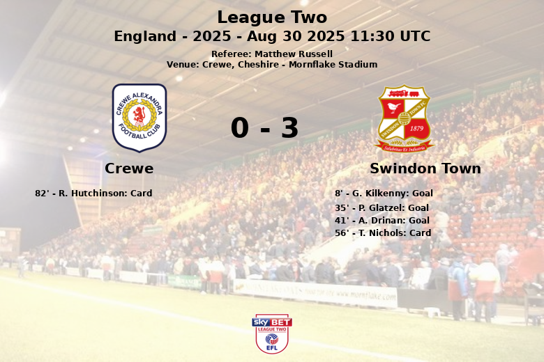 Referee Matthew Russell cautioned T. Nichols of Swindon Town and R. Hutchinson of Crewe during the match, which also saw 11 fouls committed by Swindon Town and 9 by Crewe. The match, corresponding to the sixth matchday of League Two, 2025 season, leaves Swindon Town with a resounding victory and Crewe with the task of rethinking their strategy for upcoming matches.