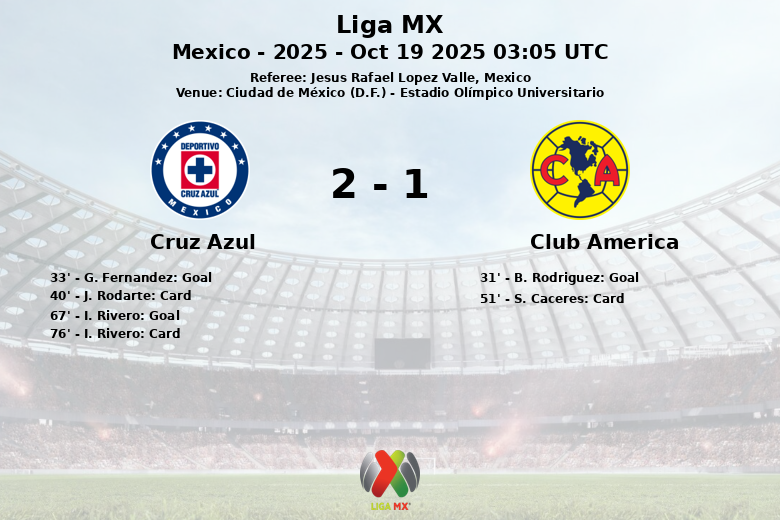 Mexico City (D.F.) – In a thrilling match held at the Estadio Olímpico Universitario, Cruz Azul defeated Club América with a score of 2 to 1 in the 13th matchday of the Liga MX Apertura 2025. The match, refereed by Jesus Rafael Lopez Valle, was characterized by intensity and midfield battles.