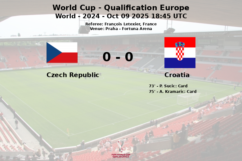 Prague, October 9, 2025 – The Czech Republic and Croatia played to a draw in a tense and tactical match held at the Fortuna Arena, valid for the European World Cup qualifying group stage. The match, refereed by France’s François Letexier, ended with a score that reflects the parity in the game.