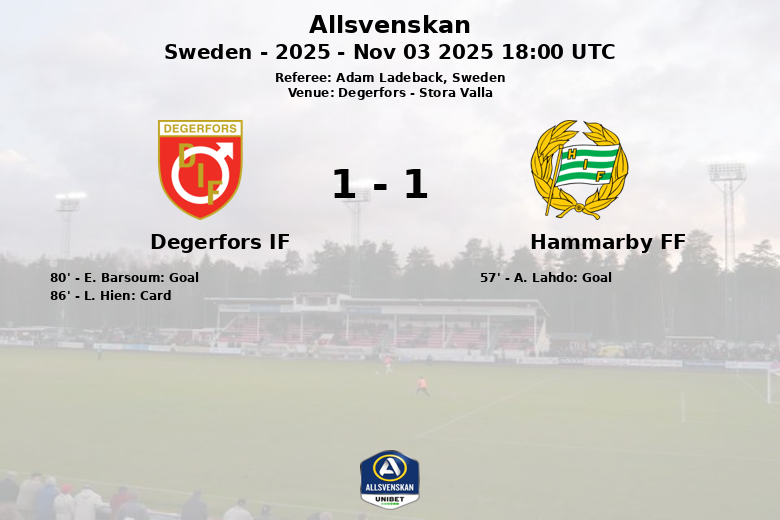 However, Degerfors did not give up and continued to search for the equalizer. Finally, in the 80th minute, E. Barsoum, with an assist from D. Sundgren, managed to level the score, unleashing joy among the home fans. The match ended in a draw that reflects the fighting spirit of both teams on the field. The match also saw a yellow card for L. Hien of Degerfors in the 86th minute.