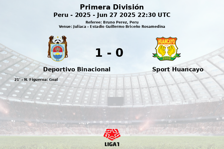 Juliaca witnessed a balanced encounter between Deportivo Binacional and Sport Huancayo, corresponding to matchday 17 of the Peruvian Primera División Apertura. The match, played at the Estadio Guillermo Briceño Rosamedina and refereed by Bruno Perez, ended with a 1-0 victory for the home team.