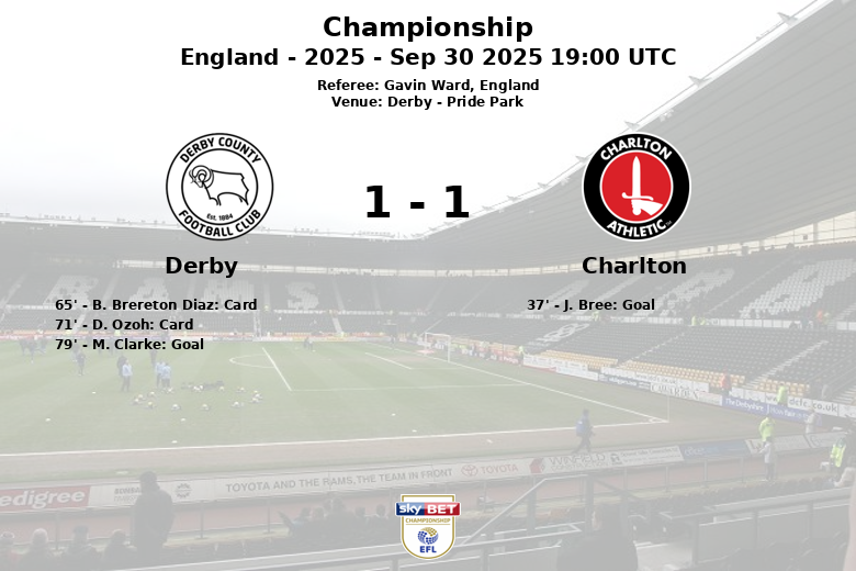Derby, England – Derby County and Charlton Athletic played to a 1-1 draw in a Championship match held at Pride Park on September 30, 2025. The match, corresponding to the eighth round of the regular season, was marked by intensity and a midfield battle.