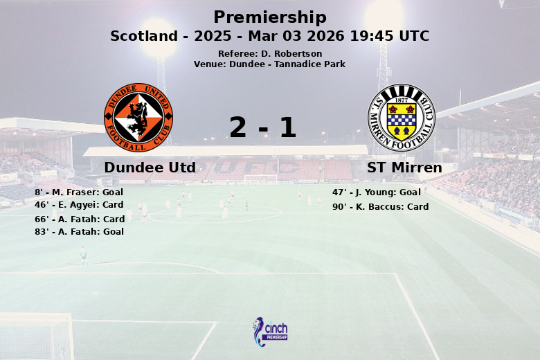 In the 83rd minute, Dundee Utd managed to regain the lead thanks to a penalty converted by A. Fatah. However, the score remained unchanged, sealing a draw that leaves a bittersweet taste for both teams.
