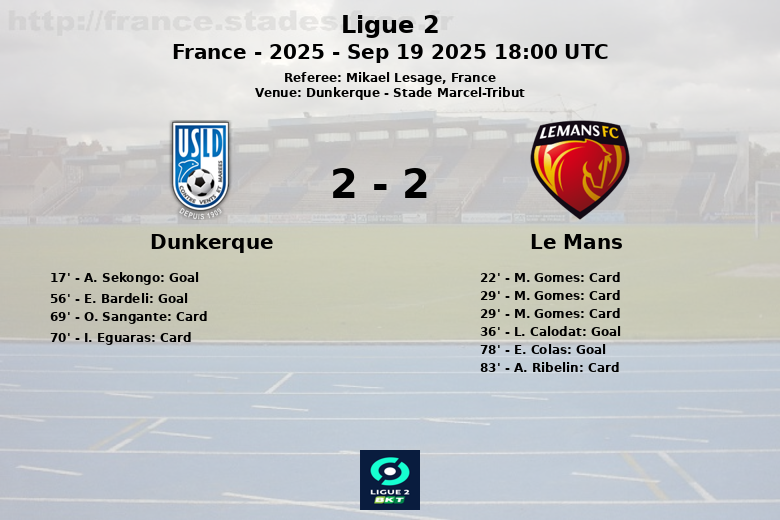 In the second half, E. Bardeli increased Dunkerque’s lead in the 56th minute. But Le Mans did not give up and E. Colas equalized in the 78th minute. The tension rose even further with the expulsion of O. Sangante from Dunkerque in the 69th minute.