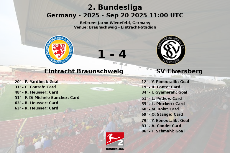 Braunschweig, Germany – SV Elversberg emerged victorious over Eintracht Braunschweig with a final score of 4 to 1 in a match held at the Eintracht-Stadion. The game, corresponding to the sixth matchday of the 2. Bundesliga, was characterized by intensity and discipline, reflected in the large number of cards shown.