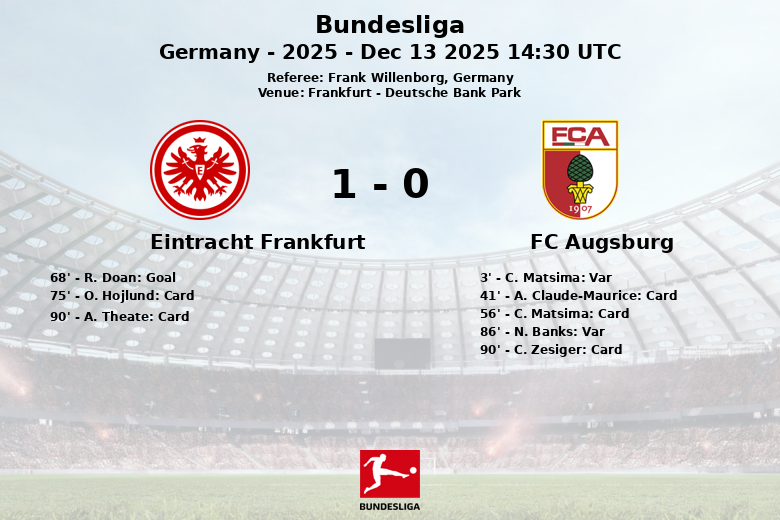 Eintracht Frankfurt vs FC Augsburg Dec 13 2025 14:30 UTC
