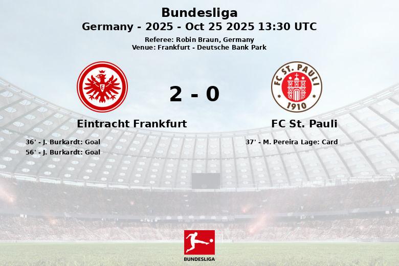Eintracht Frankfurt vs FC St. Pauli Oct 25 2025 13:30 UTC