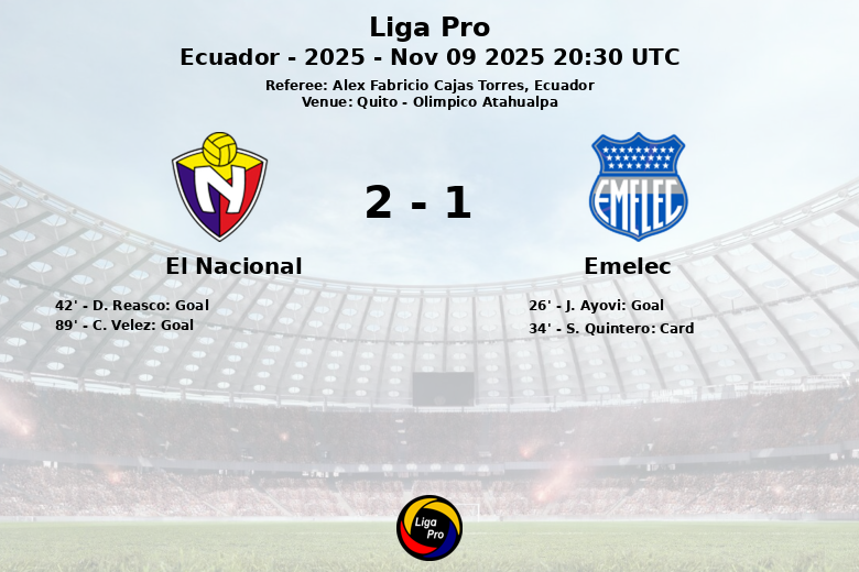 The second half was a constant back-and-forth, with both teams desperately seeking the goal that would give them the victory. Despite having less possession of the ball (44% against El Nacional’s 56%), Emelec generated a similar number of shots (15 against 16), although with less effectiveness in front of goal (4 shots on target against El Nacional’s 9). El Nacional made better use of their dominance, and in the 89th minute, C. Velez scored the winning goal for El Nacional, unleashing euphoria in the stands.