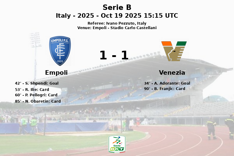 The second half was intense, with several yellow cards shown. R. Ilie, P. Pellegri, and N. Obaretin of Empoli received yellow cards, while B. Franjic was cautioned for Venezia. Although Venezia tried to capitalize on their possession dominance, generating 16 shots (4 on target and 8 off target) compared to Empoli’s 7 (all on target), the draw remained until the final whistle. Empoli committed 16 fouls, while Venezia committed 9. The match, valid for the 2025 Serie B season, left a bittersweet taste for both teams.