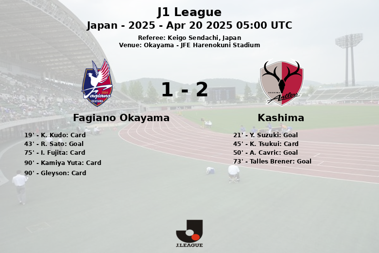 Kashima Antlers secured a victory against Fagiano Okayama in a match played at the JFE Harenokuni Stadium in Okayama, corresponding to round 11 of the 2025 J1 League. The match, refereed by Keigo Sendachi, was marked by excitement and a changing scoreline.