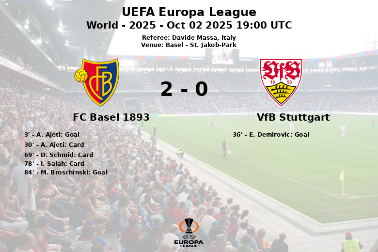 Basel, Switzerland – In a hard-fought match at St. Jakob-Park, FC Basel 1893 secured an important victory over VfB Stuttgart in the second round of the UEFA Europa League group stage. The encounter, officiated by Italian referee Davide Massa, was a clash of styles where Basel’s efficiency triumphed over Stuttgart’s possession.
