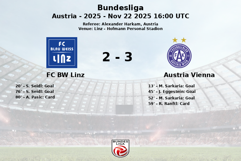 Linz, Austria – In a vibrant match played at the Hofmann Personal Stadion, Austria Vienna and FC BW Linz drew in a game corresponding to matchday 14 of the Austrian Bundesliga. Under the watchful eye of referee Alexander Harkam, the match was marked by intensity and goal-scoring opportunities on both sides.
