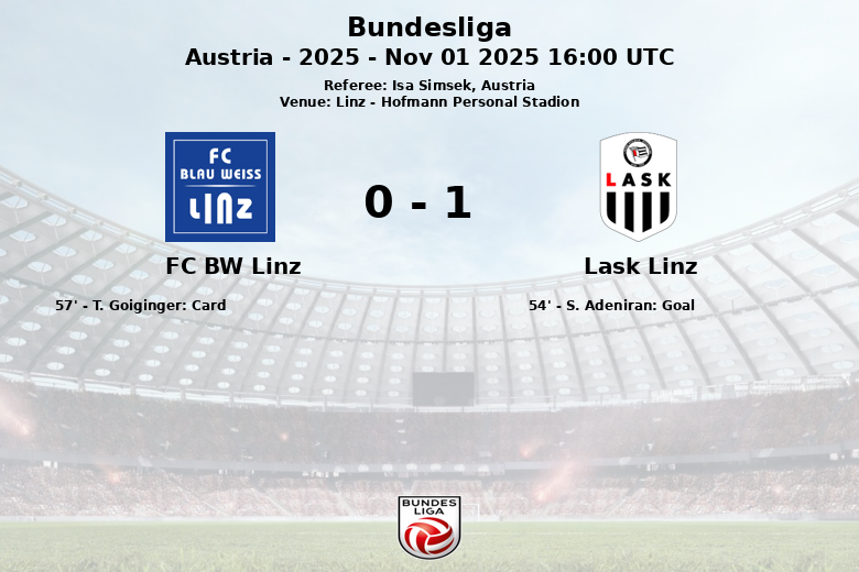 Linz, Austria – In a hard-fought match at the Hofmann Personal Stadion, LASK Linz defeated FC BW Linz in a local derby filled with intensity. The match, corresponding to matchday 12 of the Austrian Bundesliga, 2025 season, was decided by a single goal from S. Adeniran in the 54th minute.