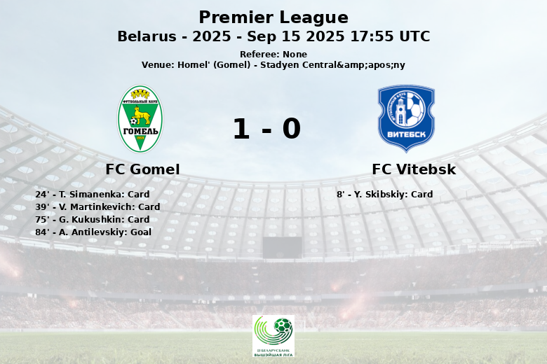 Homel’, Belarus – FC Gomel claimed victory in a tense and hard-fought match against FC Vitebsk at the Stadyen Central’ny. The encounter, corresponding to matchday 21 of the Belarusian Premier League, was decided in the final minutes thanks to a goal by A. Antilevskiy in the 84th minute, assisted by R. Adeola.