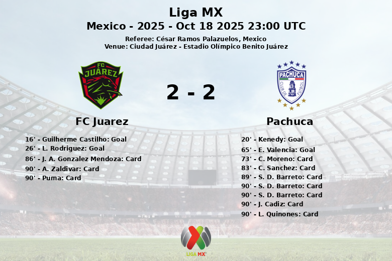 Guilherme Castilho opened the scoring for FC Juarez in the 16th minute, raising hopes for the home fans. However, the joy was short-lived as Kenedy equalized for Pachuca just four minutes later. The first half remained intense, and in the 26th minute, an own goal by L. Rodriguez put FC Juarez ahead.