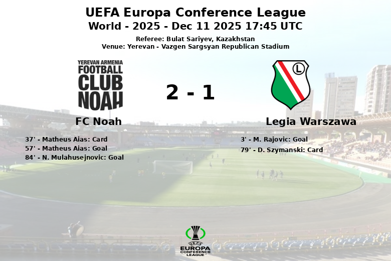 Home Matches FC Noah vs Legia Warszawa Dec 11 2025 17:45 UTC