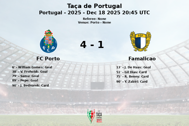 Porto, Portugal – In an exciting Taça de Portugal match held on December 18, 2025, FC Porto overpowered Famalicão with a final score of 4-1 at their home stadium. The match, corresponding to the Round of 16, was a feast of goals and tense moments.