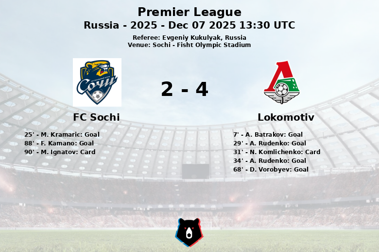Sochi, Russia – In an exciting match held at the Fisht Olympic Stadium, Lokomotiv secured a convincing victory over FC Sochi with a final score of 4 to 3. The match, corresponding to matchday 18 of the Russian Premier League, 2025 season, was full of twists and turns and goals from the beginning.