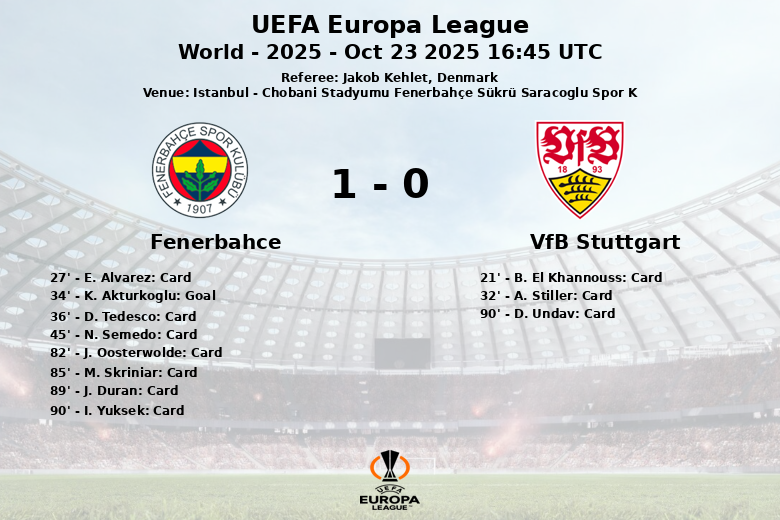 Istanbul, Turkey – Fenerbahce secured a victory against VfB Stuttgart in a hard-fought match at the Chobani Stadyumu Fenerbahçe Sükrü Saracoglu Spor K as part of the UEFA Europa League. The match, corresponding to the third matchday of the league stage, was characterized by its intensity and numerous cautions.