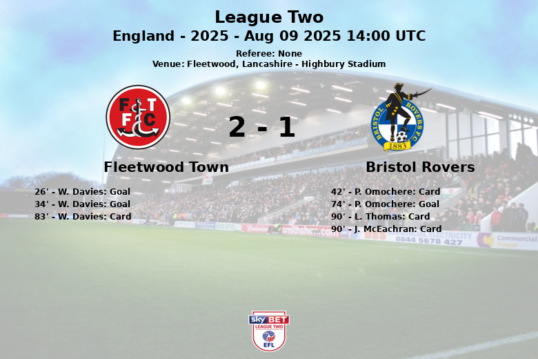 The match was also marked by intensity in midfield, with a total of 30 fouls committed (15 by each team). Fleetwood Town received one yellow card (W. Davies in the 83rd minute) while Bristol Rovers accumulated two cautions (P. Omochere in the 42nd minute, L. Thomas in the 90th minute and J. McEachran in the 90th minute). In the end, Fleetwood Town’s effectiveness in the first half proved decisive in securing all three points.