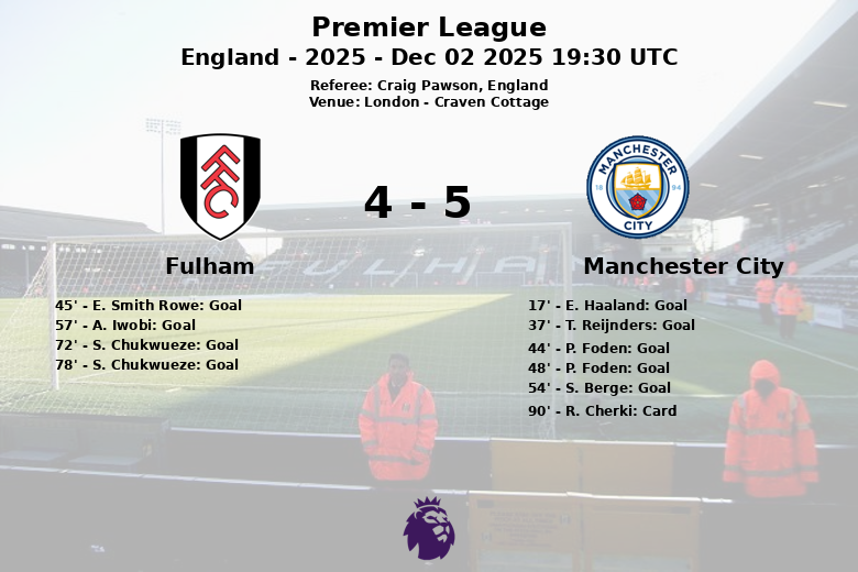 The second half continued with the same intensity. Foden scored again in the 48th minute, once more assisted by Haaland. An own goal by S. Berge in the 54th minute further widened City’s lead. A. Iwobi scored for Fulham in the 57th minute, but the City defense managed to keep the home side at bay in the final minutes. S. Chukwueze scored twice, in the 72nd and 78th minutes, narrowing the gap for Fulham.