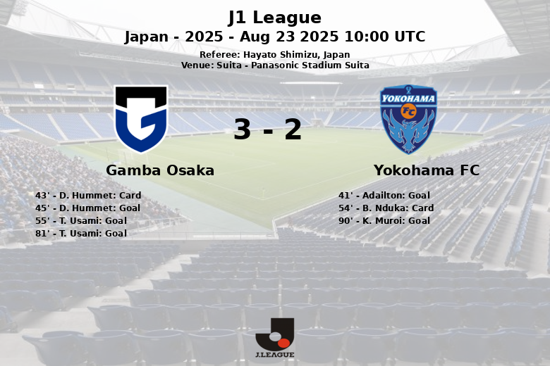 Thrilling Match in Suita: Gamba Osaka Edges Out Yokohama FC 3-2
